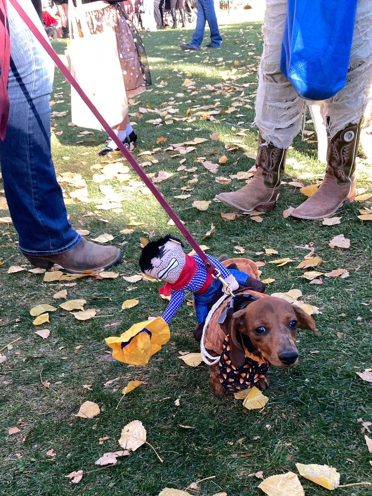 Since we're a rural community, we don't get trick-or-treaters. Instead, the town hosts a Halloween celebration at a local park. Howdy had a fun costume.