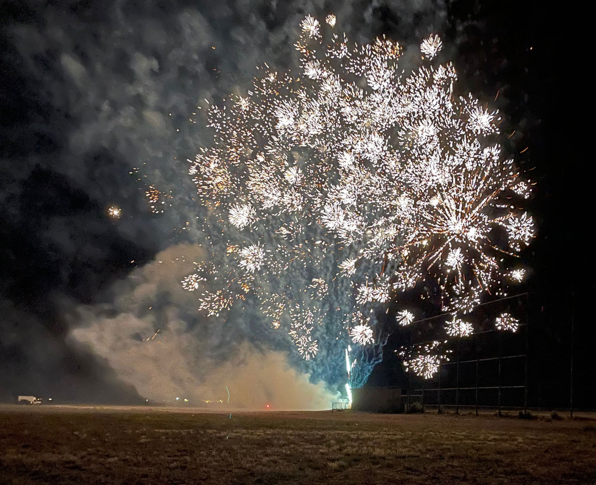 The evening is topped off by the lighting of the courthouse and surrounding trees and a fireworks display.