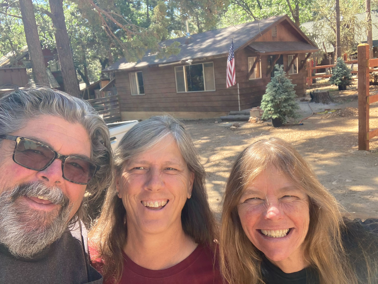 Sheila and I visiting my sister Lisa in Big Bear, CA. That's Lisa's cabin in the background.
