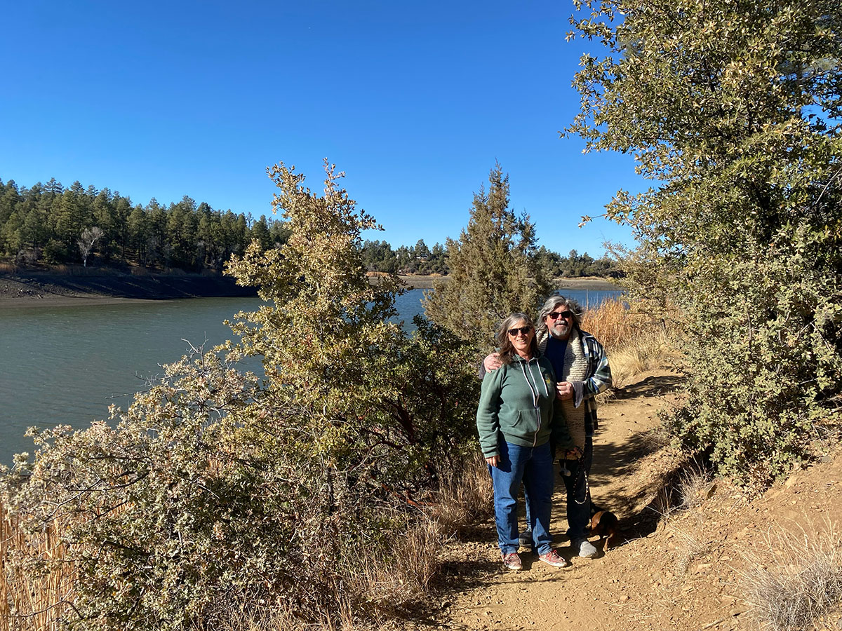 Don, Sheila, and Bekah, recently walked a trail that goes around the lake.