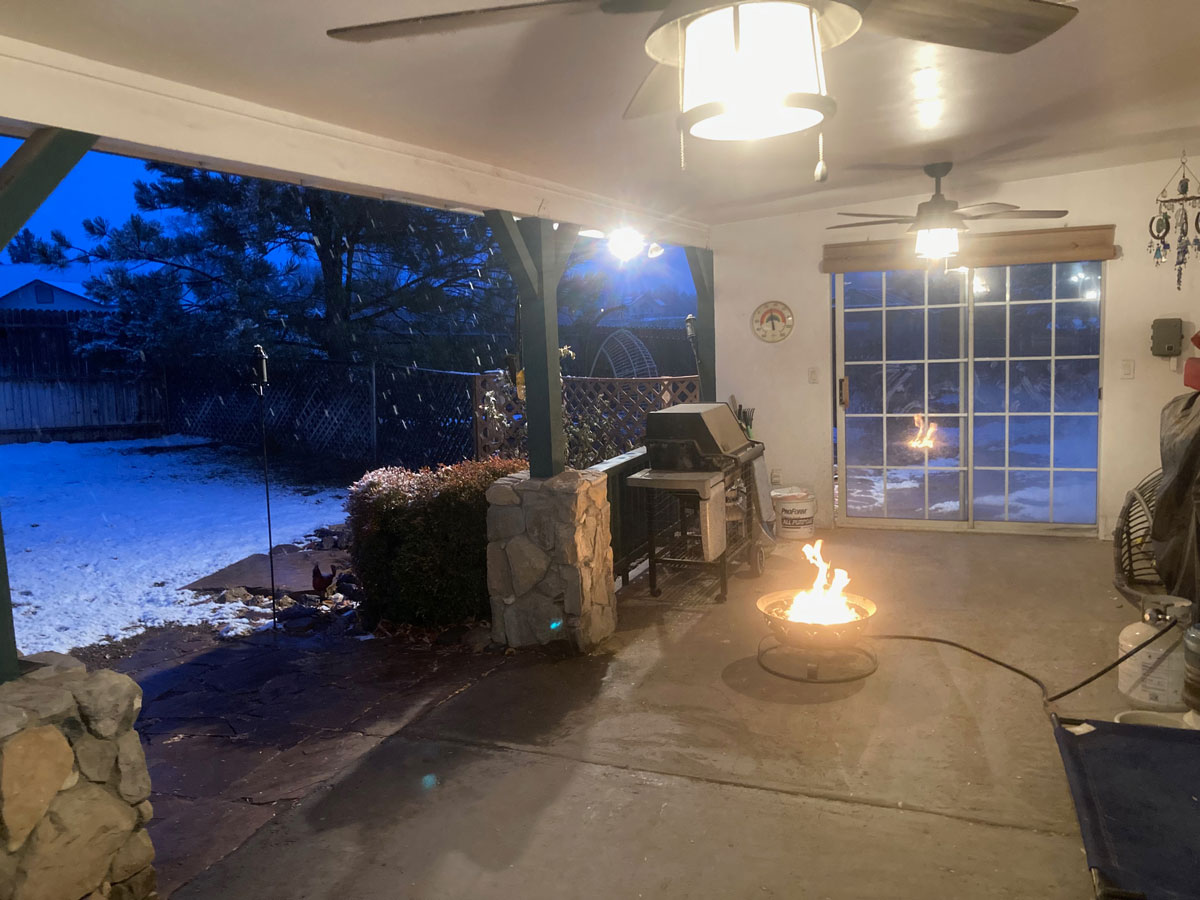 It was cold and windy but a closed sliding door and a propane fire pit made things pretty cozy.